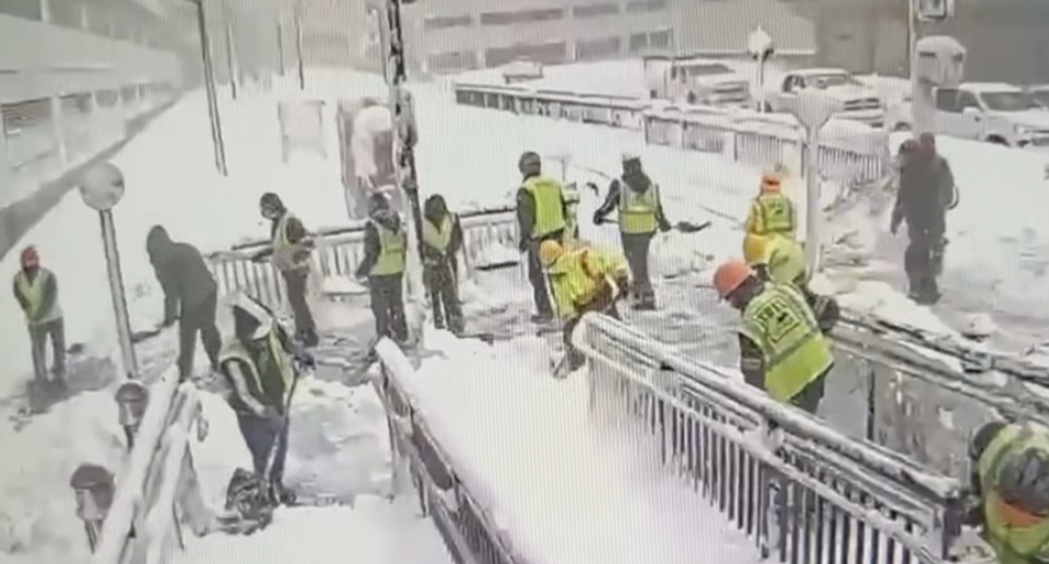 NEWARK, N.J. – A social media post from NJ Transit meant to highlight the agency’s winter cleanup efforts has instead drawn widespread ridicule, after a photo showed more than a dozen workers clearing train platforms with nothing but shovels — and not a single snowblower in sight.