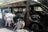 FILE PHOTO: A student lays a bouquet in memory of her Chinese teachers, near the wreckage of a passenger van after a blast, during what they call a peaceful protest, outside the Confucius Institute at University of Karachi, in Karachi Pakistan April 29, 2022. REUTERS/Akhtar Soomro