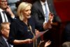 FILE PHOTO: Marine Le Pen, member of parliament and president of the French far-right National Rally (Rassemblement National – RN) party parliamentary group, speaks during the questions to the government session at the National Assembly in Paris, France, July 4, 2023. REUTERS/Stephanie Lecocq/File Photo