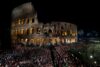 People attend the Via Crucis (Way of the Cross) procession during Good Friday celebrations at the Colosseum, which Pope Francis follows from Casa Santa Marta at the Vatican due to the intense cold, in Rome, Italy April 7, 2023. REUTERS/Remo Casilli