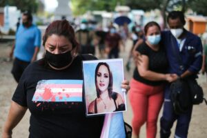 An activist holds a picture of Alexa Landaverde, a transgender woman who disappeared in December 2021 and whose body was found in a well in January 2022, during her funeral procession in Quezaltepeque, El Salvador March 3, 2022. REUTERS/Jose Cabezas