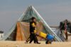 Boys transport containers on a hand trolley, as displaced Palestinians, who fled their houses due to Israeli strikes, take shelter in a tent camp, amid the ongoing conflict between Israel and the Palestinian Islamist group Hamas, at the border with Egypt, in Rafah in the southern Gaza Strip, February 8, 2024. REUTERS/Ibraheem Abu Mustafa