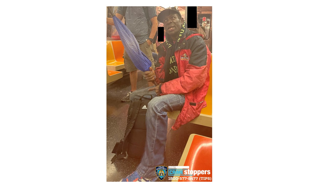 The man was described as a black male wearing a black hat and a red and black jacket. He was carrying a blue-spotted umbrella and a backpack. The man exited the train before police arrived on scene.