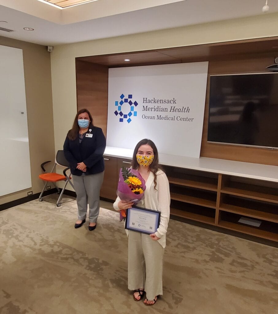 Brick, NJ – October 8, 2020 – The Barbara Forfar Nursing Scholarship committee presented its 2020 scholarships on September 29 at Hackensack Meridian Ocean Medical Center to deserving recipients, Shoshana Diamond of Jackson Township and Emily Trione of Brick Township. Each recipient received a $500 scholarship to further their nursing education.