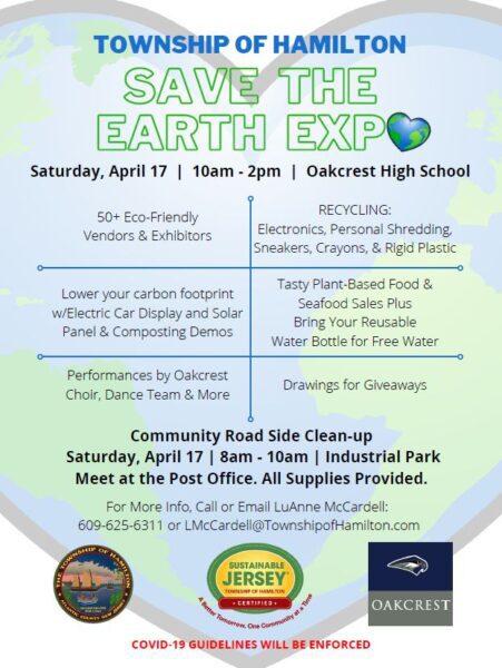 • Save the Earth Expo: Oakcrest High School, 1824 Dr. Dennis Forman Drive, Mays Landing, NJ