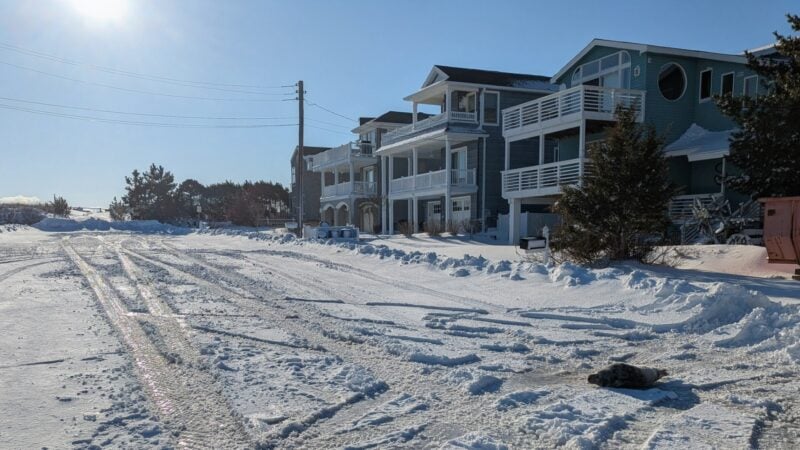 The Marine Mammal Stranding Center received a call February 24 from the Harvey Cedars Police Department reporting a seal in the roadway. Officers and members of the Harvey Cedars Department of Public Works stopped traffic as the female gray seal pup made her way toward Middlesex Avenue.