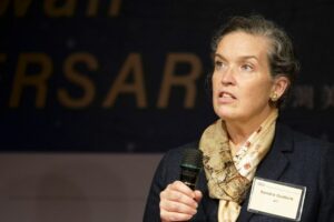 FILE PHOTO: American Institute in Taiwan (AIT) Director Sandra Oudkirk speaks at an event marking the 70th anniversary of American Chamber of Commerce (AmCham) in Taipei, Taiwan December 8, 2021. REUTERS/Fabian Hamacher